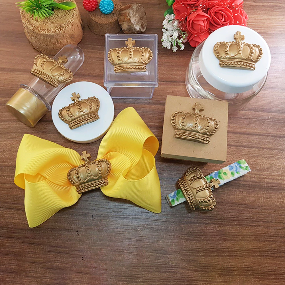 Fabricada em silicone de alta qualidade, a forma oferece flexibilidade, resistência e fácil desmoldagem, permitindo trabalhar com materiais como cera, resina, gesso, sabonete e argila. Com acabamentos ricos em detalhes, a coroa com cruz é ideal para composições que requerem um visual refinado e temático.
