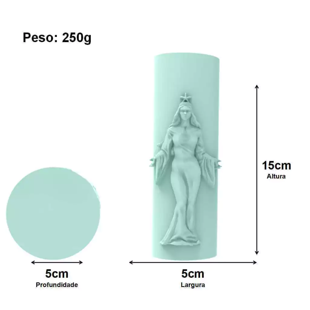 Transforme seus projetos com a nossa Forma de Silicone Vela Iemanjá, ideal para criar peças decorativas que celebram a força e a beleza de Iemanjá, a rainha do mar. Perfeita para artesãos que desejam incorporar simbolismo e sofisticação em suas criações, esta forma é uma excelente escolha para uma variedade de aplicações artesanais. Importante: Esta forma não é adequada para produção alimentícia.