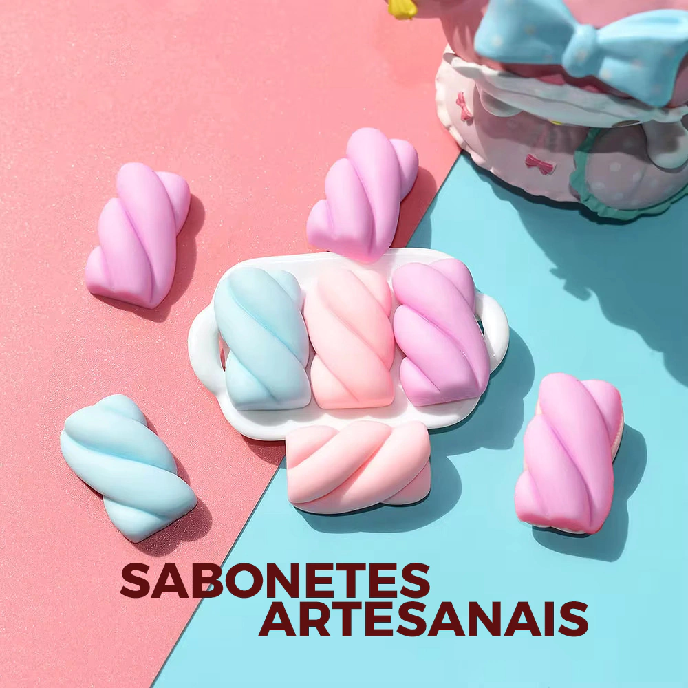 Produção de Sabonetes Artesanais: Crie sabonetes em formato de marshmallow, perfeitos para presentear ou vender em feiras de artesanato. Use bases de sabão glicerinado e adicione corantes suaves e óleos essenciais para criar sabonetes perfumados e atraentes.