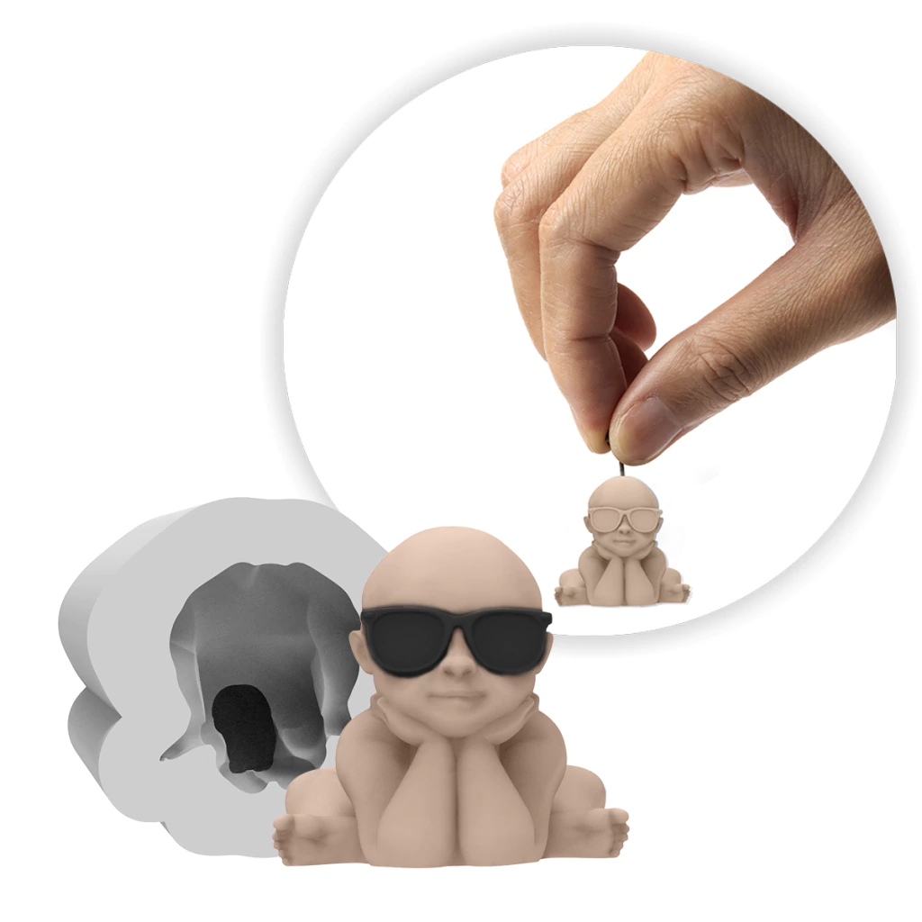 A Forma de Silicone Mini Bebê com Óculos é perfeita para quem deseja agregar originalidade às criações artesanais, proporcionando peças encantadoras e diferenciadas.