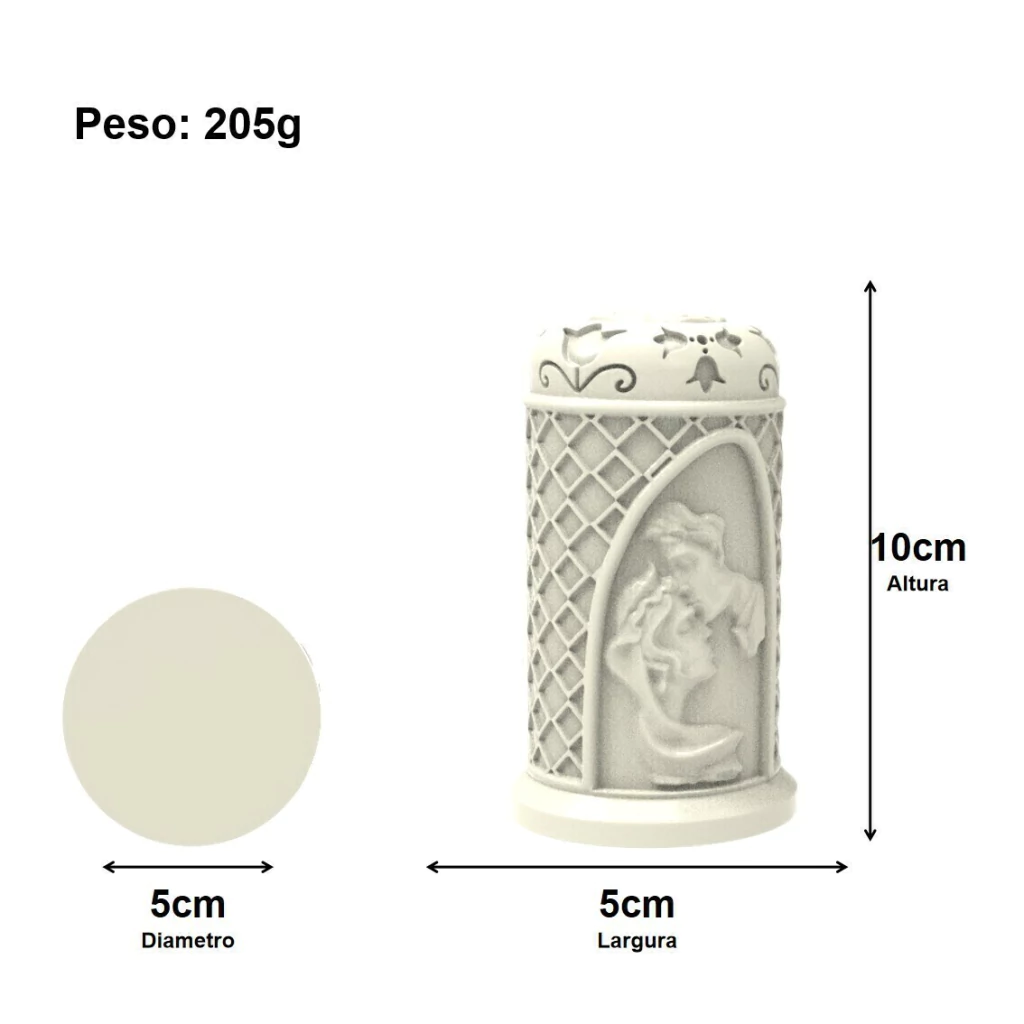 Deixe seu Dia dos Namorados ainda mais especial com nossa Forma de Silicone de Vela Cilíndrica decorada com casais apaixonados. Destacamos o delicado momento em que o casal troca um beijo na testa, transmitindo carinho e cumplicidade. Com detalhes meticulosos e uma atmosfera romântica, esta forma é perfeita para criar velas personalizadas que expressam todo o amor compartilhado entre vocês. Celebre o Dia dos Namorados com um toque de ternura e romance, graças à nossa encantadora Forma de Silicone decorada com casais apaixonados.