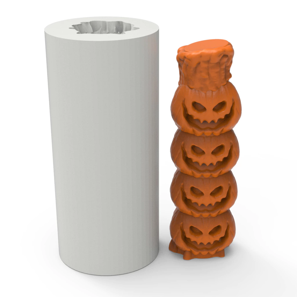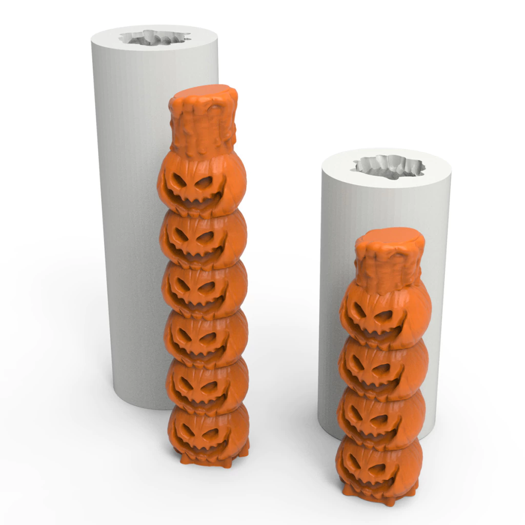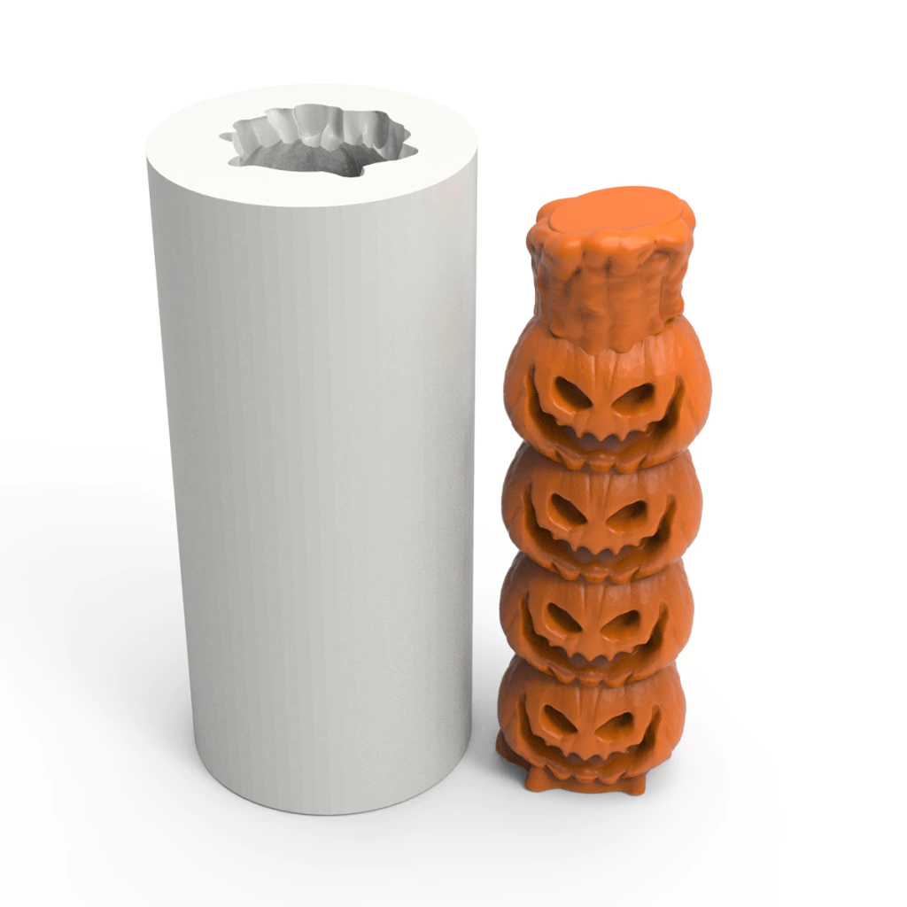 Feito em silicone resistente e de alta qualidade, esse molde permite criar uma vela com design vertical de abóboras empilhadas com rostos assustadores, ideal para decoração temática, festas, lembrancinhas e kits personalizados.