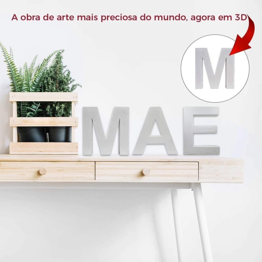 Adicione um toque de ternura e significado à sua decoração com nossa Peça de Alfabeto em Gesso com a palavra "Mãe". Com sua simplicidade e elegância, esta peça é mais do que apenas uma decoração; é uma expressão de amor e gratidão pela figura materna em nossas vidas. Perfeita para adornar prateleiras, estantes ou paredes, esta peça adiciona um toque pessoal e emocionante a qualquer ambiente. Celebre o amor materno de uma maneira única e tocante com nossa Peça de Alfabeto "Mãe" em gesso, uma adição encantadora para sua decoração.