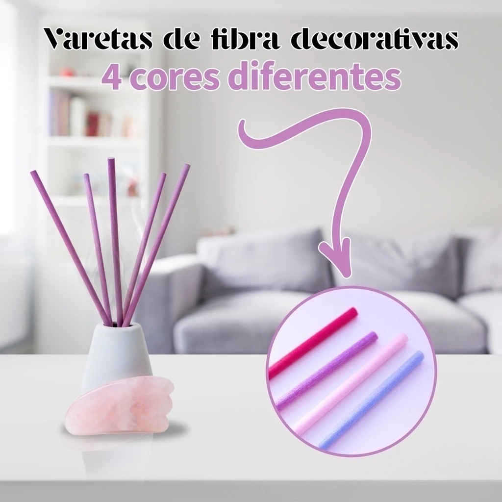 Perfeitas para projetos de artesanato, essas varetas de fibra sintética são especialmente indicadas para quem procura criar peças únicas e personalizadas. Embora não absorvam e não exalem fragrâncias intensamente, tornam-se uma opção versátil para integrar o design e a criatividade em suas criações artísticas.